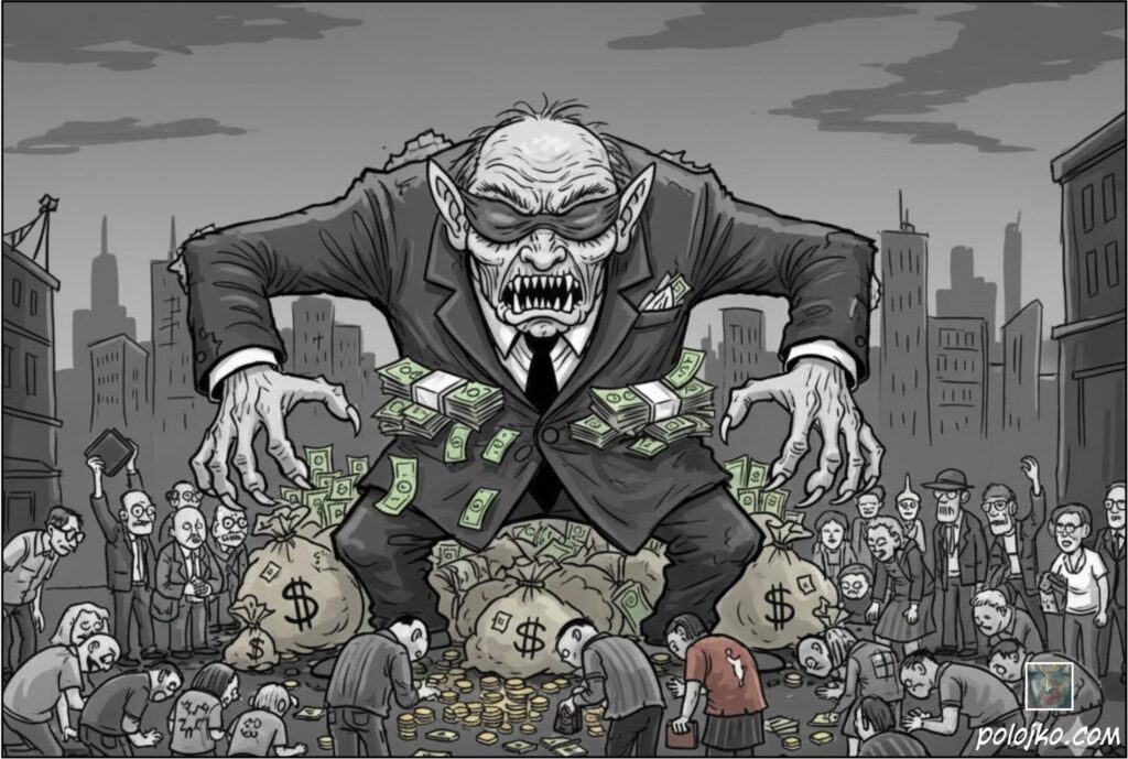 Kapitalizam je prošao svoje tinejdžerske godine i postao je mrzovoljan, otuđen i senilan, stvarajući slepu pohlepnu nakazu koju nije briga za istinu ili saosećanje, već samo za novac.